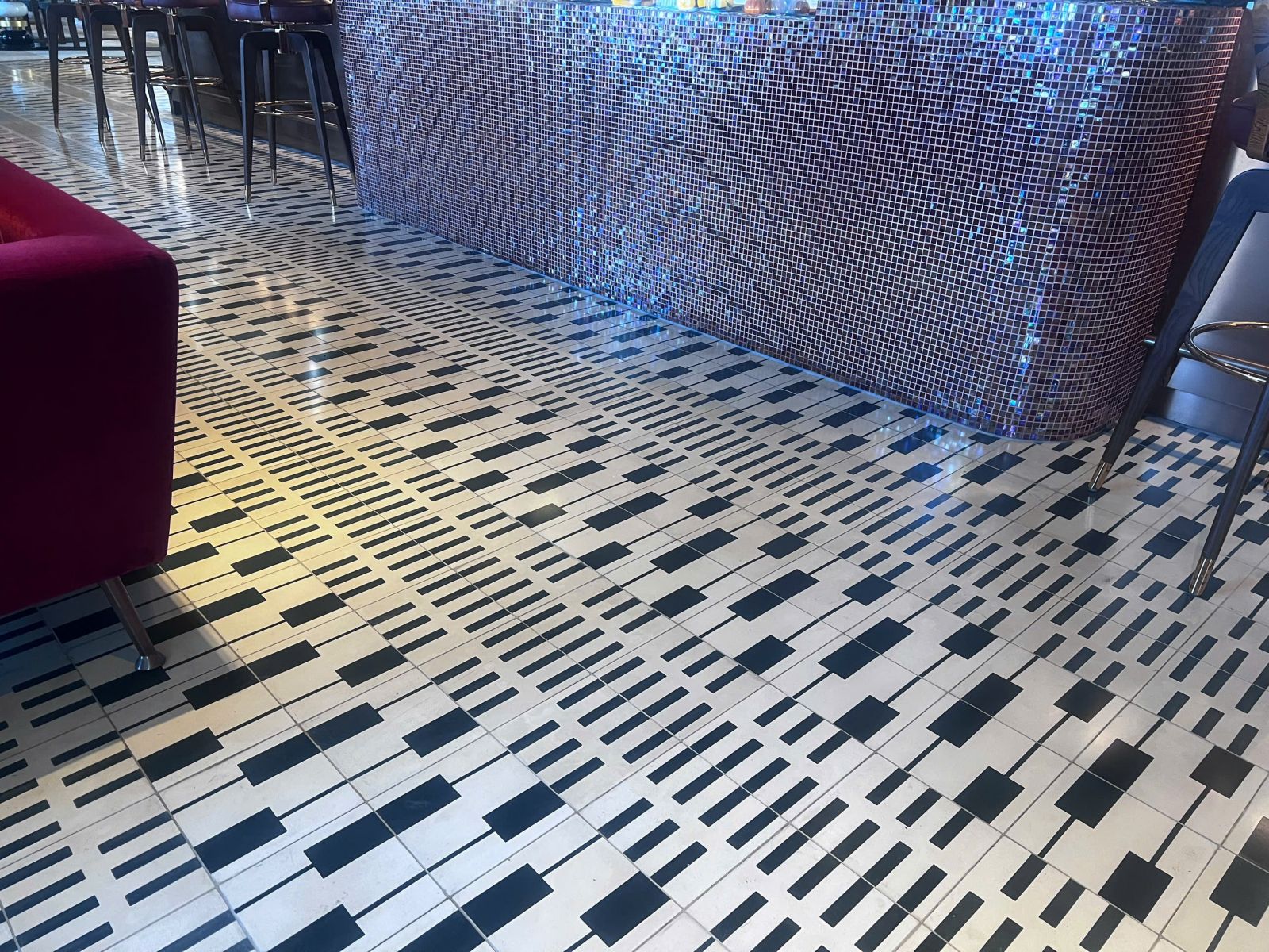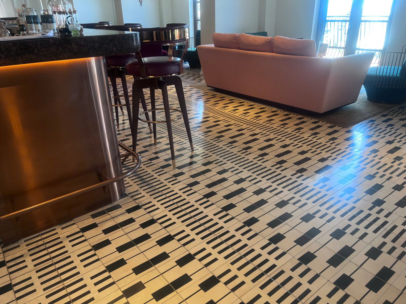 A small café, warm yellow lighting, the gentle clink of glasses. You step inside – and beneath your feet, patterned cement tiles seem to move. Not loud, not flashy, but enough to create a rhythm of their own.