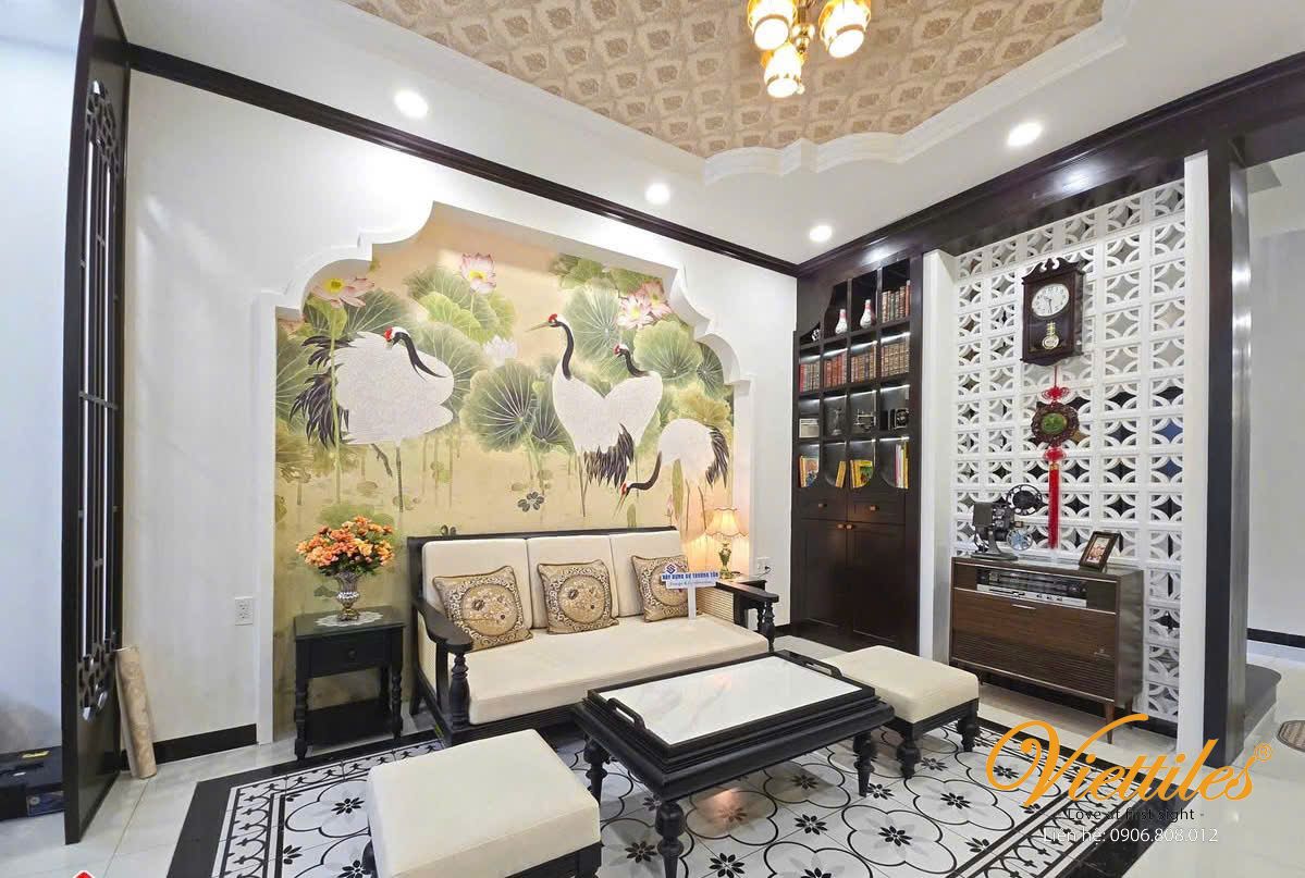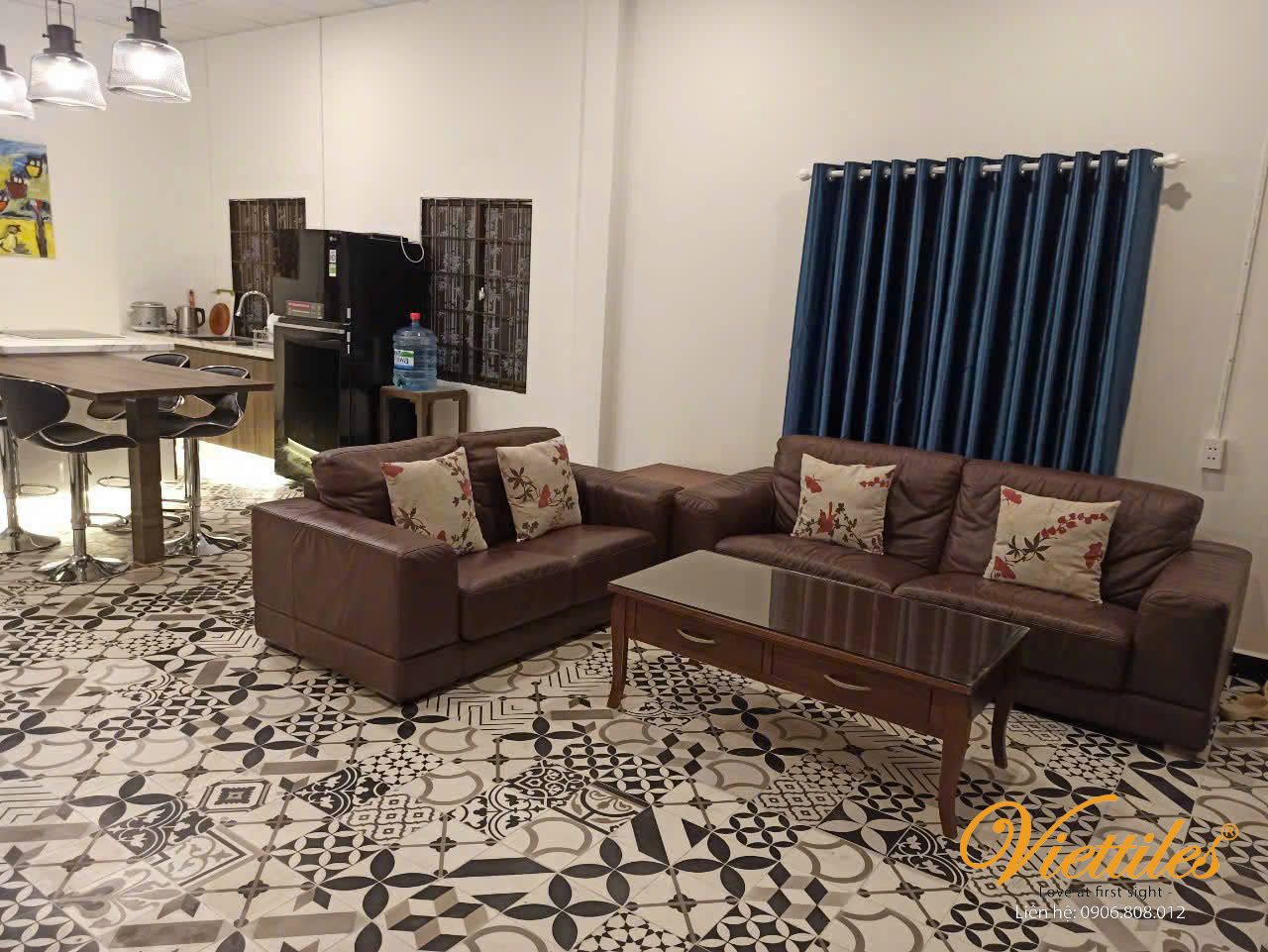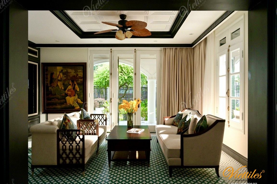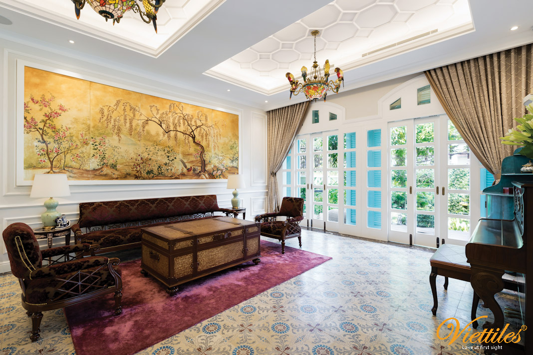 Viettiles cement tiles help the living room not only be beautiful but also "harmonize feng shui – prosperity – welcome fortune".